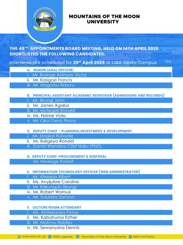 The Faculty of Agriculture and Environmental Sciences staff of Mountains of the Moon University have convened evaluation engagement today April,1.2026 at New Fort View Hotel in Fort-Portal Tourism City to...